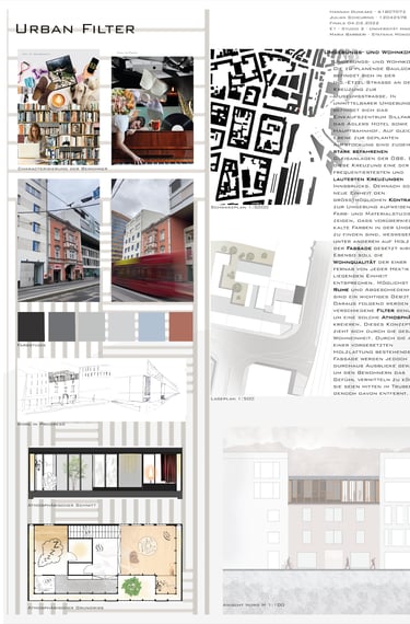 This project explored hidden and unused gaps within the urban fabric. We were tasked with identifying a real vacant space in the city and designing a compact apartment for two people that would fit seamlessly into this “urban filter.”