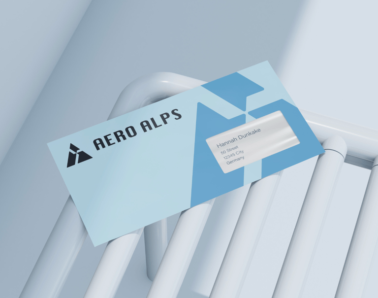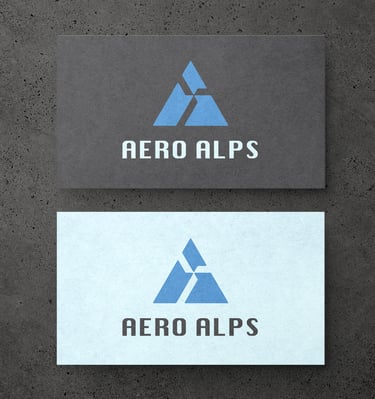 Aero Alps is a heliskiing company, and the logo is inspired by both the shape of a mountain and the rotor blades of a helicopter, perfectly capturing what the brand is about. I chose a clean, minimalistic aesthetic to keep the identity professional, trustworthy, and visually strong. The color palette combines light blue and a deeper, stronger blue, reflecting snow, altitude, and elegance while maintaining a clear sense of reliability and professionalism.